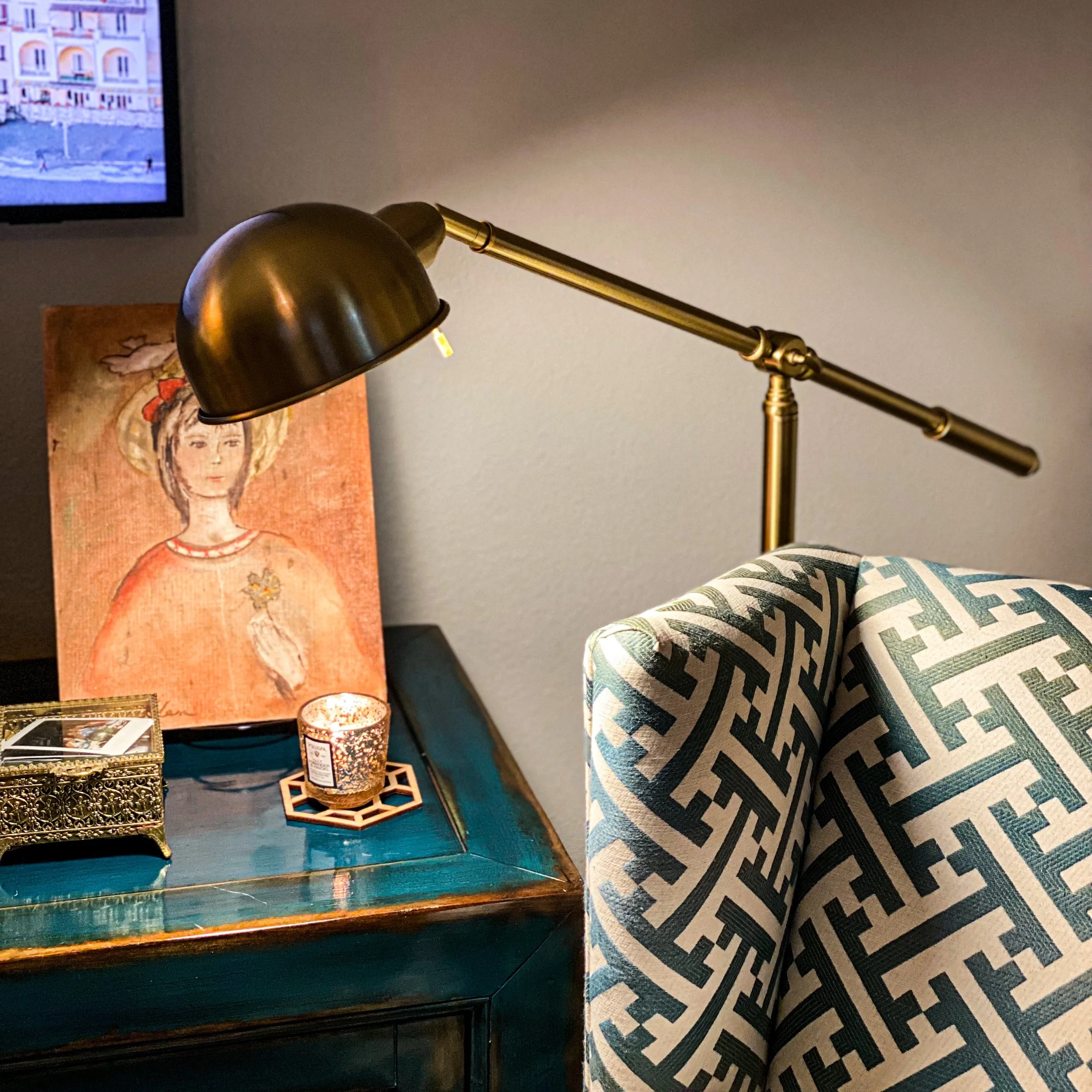 The brass reading lamp is part of The Official Art of Living Beautifully Fall Edit. It’s adjustable, under $100, and was so simple to assemble. I love the traditional look. The gallery wall was a compilation of photos and paintings that I already had: a ballerina I found at The Antique Mall months ago that made me think of Noëlle, my character from The France Dance; an antique oil painting I inherited from my grandmother; a watercolor BP and I purchased in Puerto Rico last summer; and some photographs from past travels that I love.