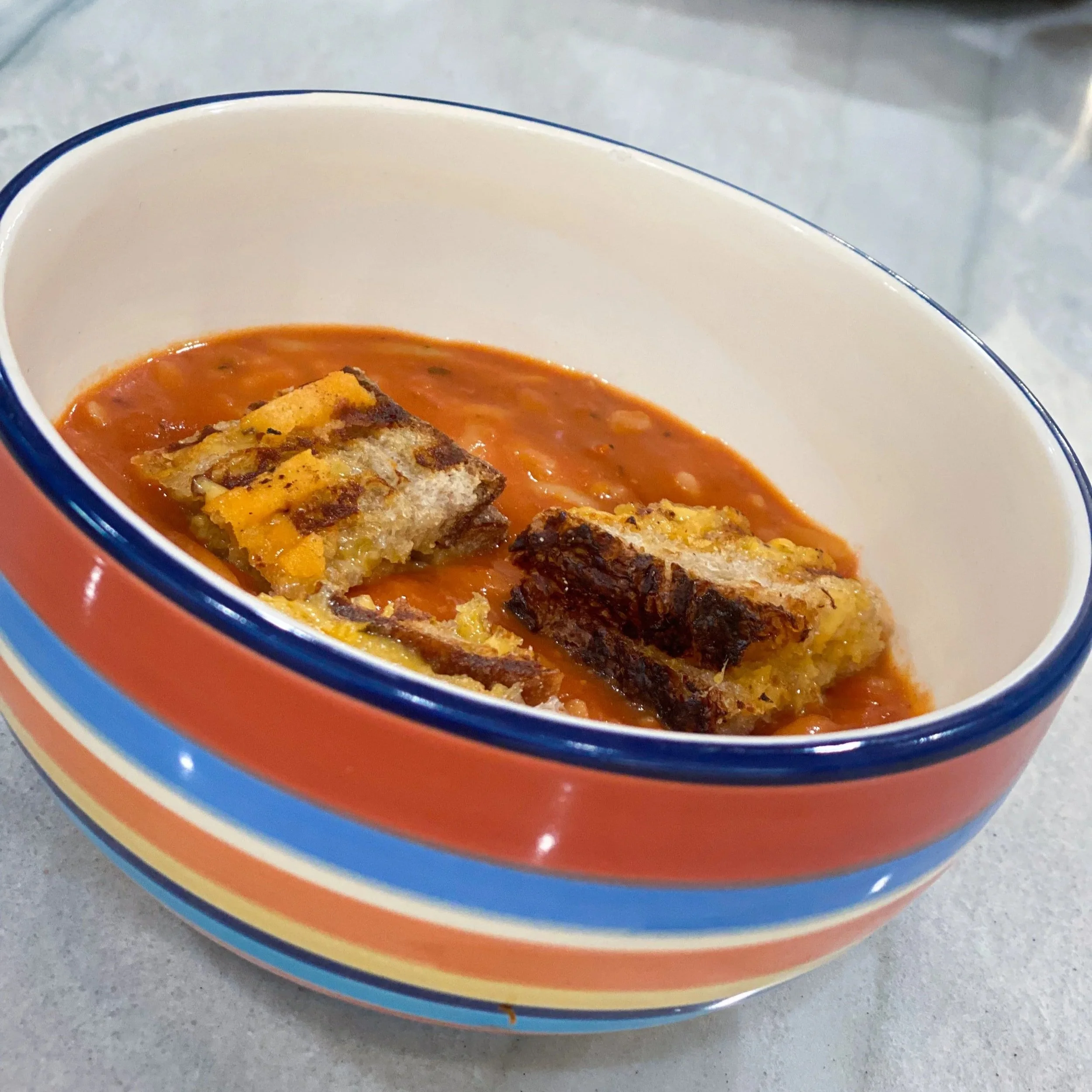 The best part, you put grilled cheese croutons on top! Let me know if you’re interested in the recipe and I’ll publish it soon.