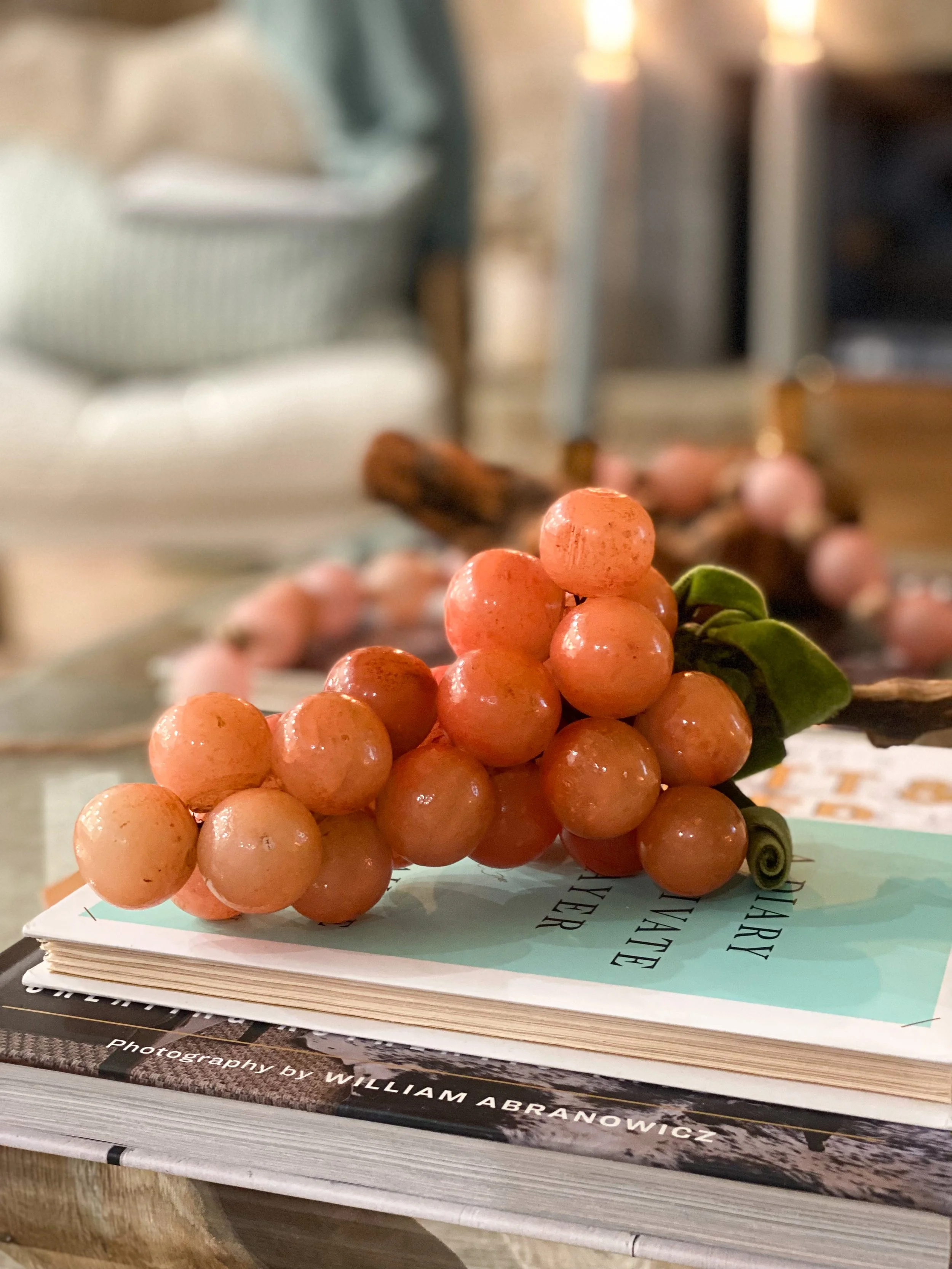I LOVE vintage alabaster grapes, and how amazing that they are pink! I’ve never seen pink ones before.